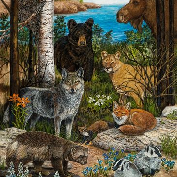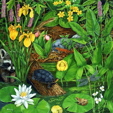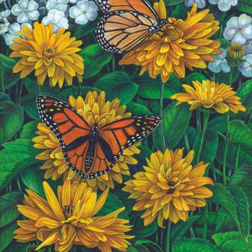 Most of these paintings were done with gouache, an opaque watercolor. I love the detail that can be achieved with the creamy paint and tiny brushes. For instruction in using gouache to paint birds, animals and botanicals click on the "Learning Center" tab above.